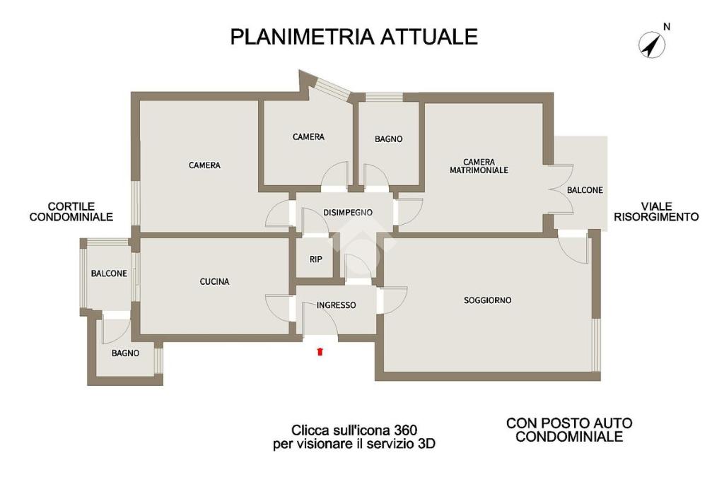 Nell'icona 360° troverete il servizio Matterport per prendere le misure e camminare in casa. Cercate i tondini colorati dove troverete contenuti e dettagli.