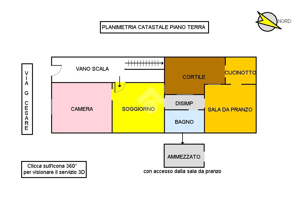 Nell'icona 360° troverete il servizio Matterport per prendere le misure e camminare in casa. Cercate i tondini colorati dove troverete contenuti e dettagli.