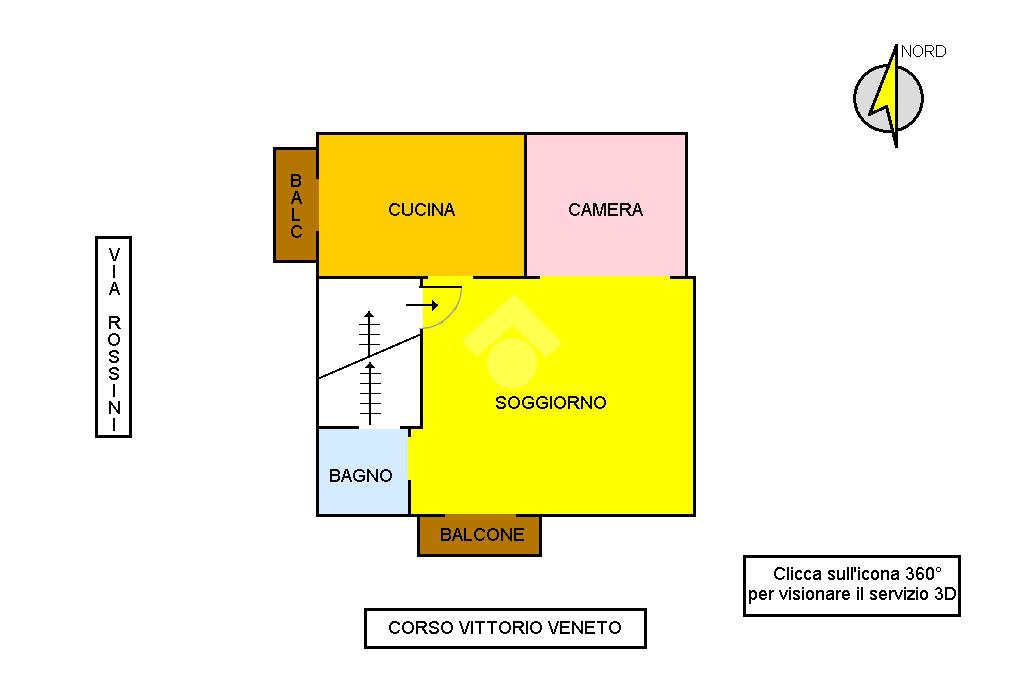 Nell'icona 360° troverete il servizio Matterport per prendere le misure e camminare in casa. Cercate i tondini colorati dove troverete contenuti e dettagli.