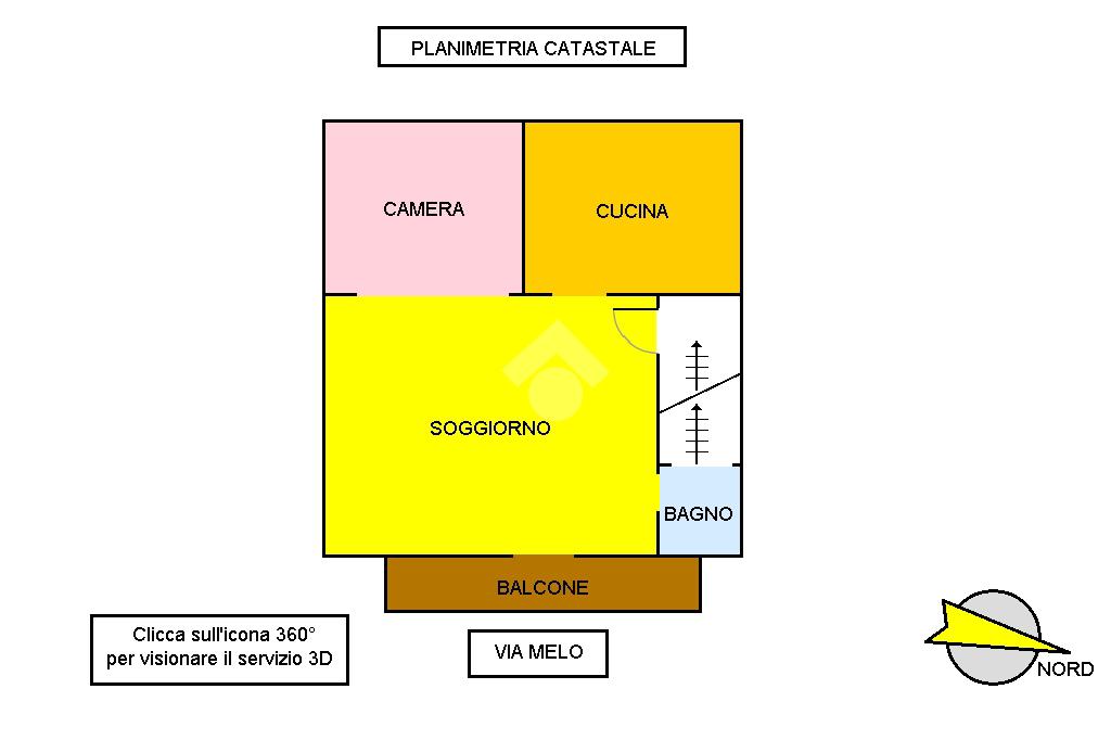 Nell'icona 360° troverete il servizio Matterport per prendere le misure e camminare in casa. Cercate i tondini colorati dove troverete contenuti e dettagli.