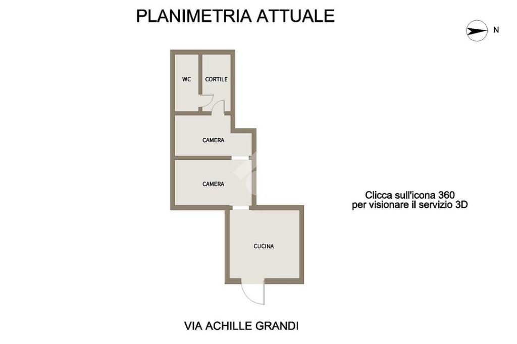 Nell'icona 360° troverete il servizio Matterport per prendere le misure e camminare in casa. Cercate i tondini colorati dove troverete contenuti e dettagli.